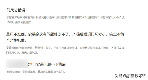 在黑貓投訴中,對(duì)于木門的投訴多集中在裝載耽擱、丈量有誤和售后問(wèn)題不解決這幾方面。
